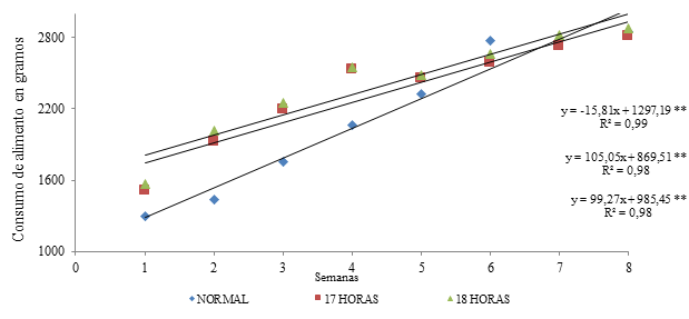 Lo expuesto anteriormente concuerda con Chicaiza (2013), quien dice que las horas luz influyen en el consumo de alimento.