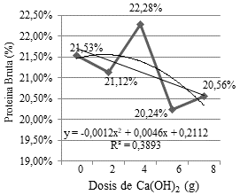 En la Figura 2 se presentan las medias del porcentaje de proteína bruta obtenida en el experimento donde se trabajó con de dosis de hidróxido de calcio. No h